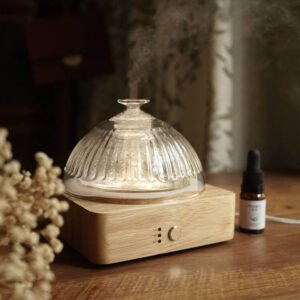 Glass Dome Essential Oil Diffuser with Glass Reservoir & Wood Base-Plastic Free